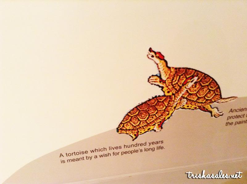 Text (Bottom): Ancient people believed that imaginary animals protect them from the evil. So they used to hang up the painting on the wall inside the house.